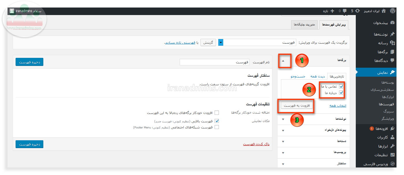 ساخت و مدیریت فهرست ها یا منوها در وردپرس